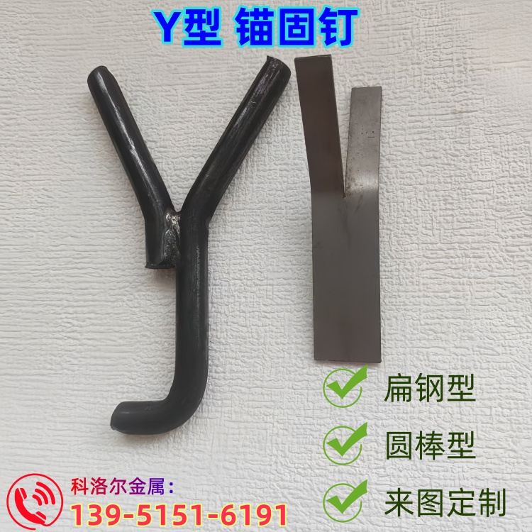 Y型锚固钩: Y型锚固钩因其形状类似英文字母Y而得名,也常被称为Y型锚固钉、Y型抓钉或Y型保温钉。这种锚固钩主要用于固定耐火砖和保温材料,其独特的形状和结构能够有效分散炉墙的负荷,减少应力集中,从而提高炉墙的稳定性和耐久性。此外,Y型锚固钩还具有较强的耐高温性能,能够在高温环境下保持良好的紧固性能。